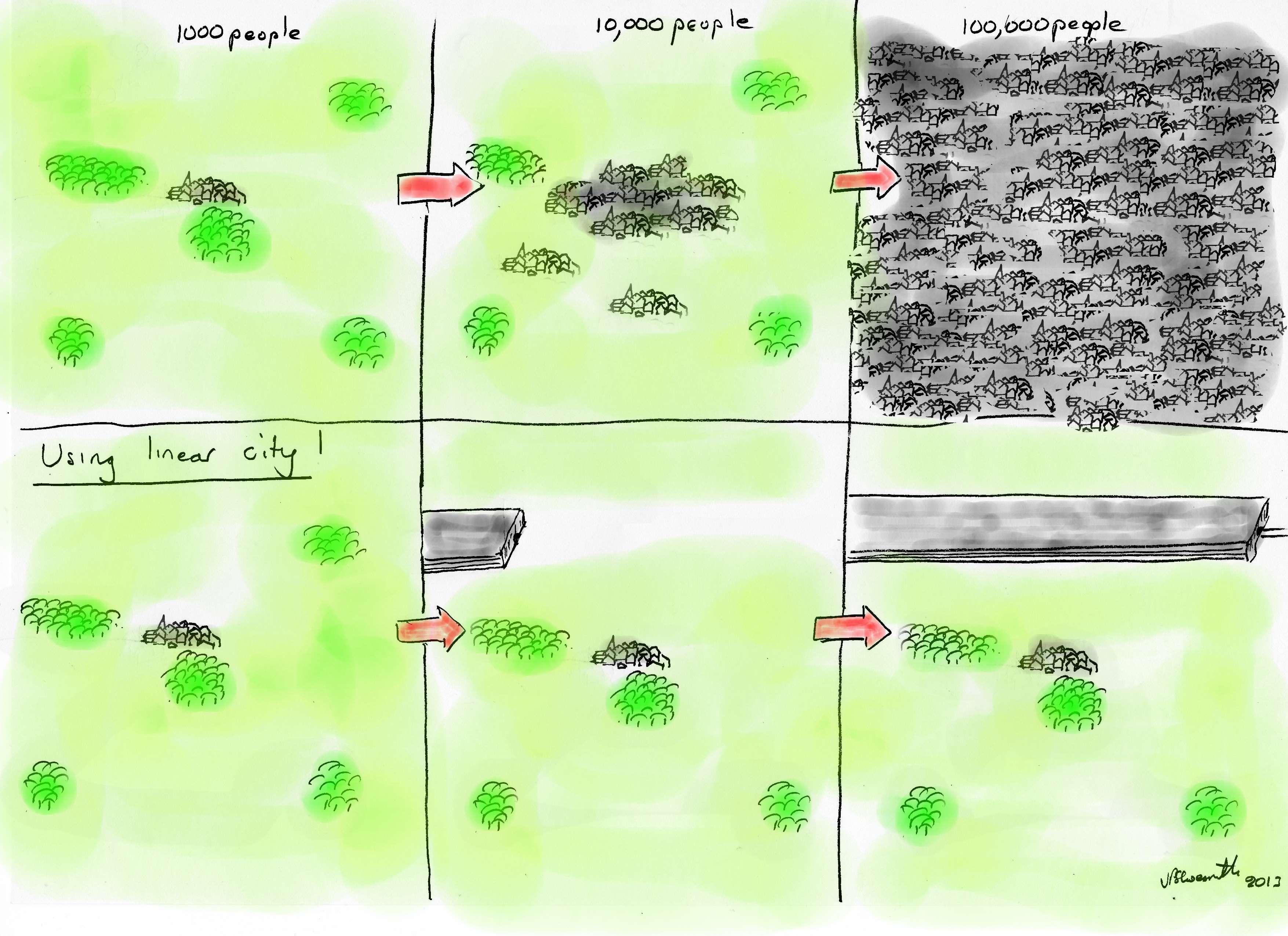 I’ve done a page with a little more information on linear cities in the ‘Background and Assumptions’ section.