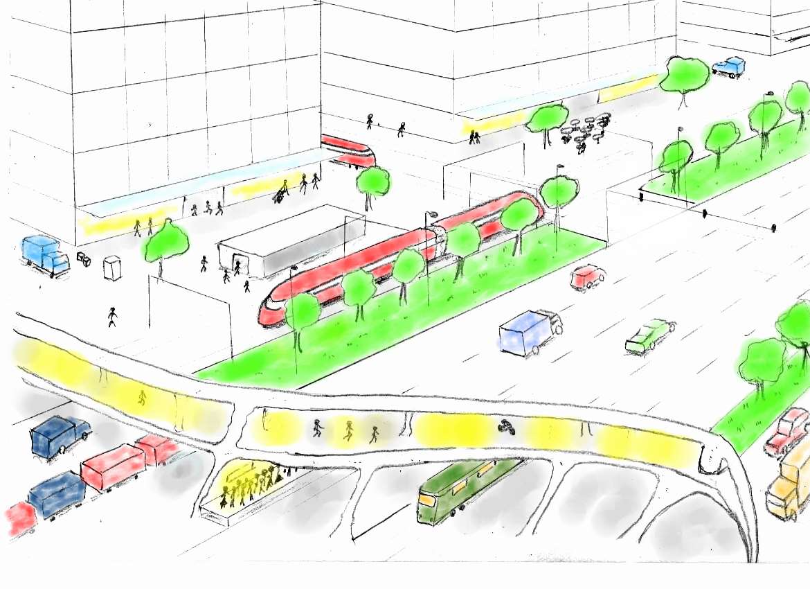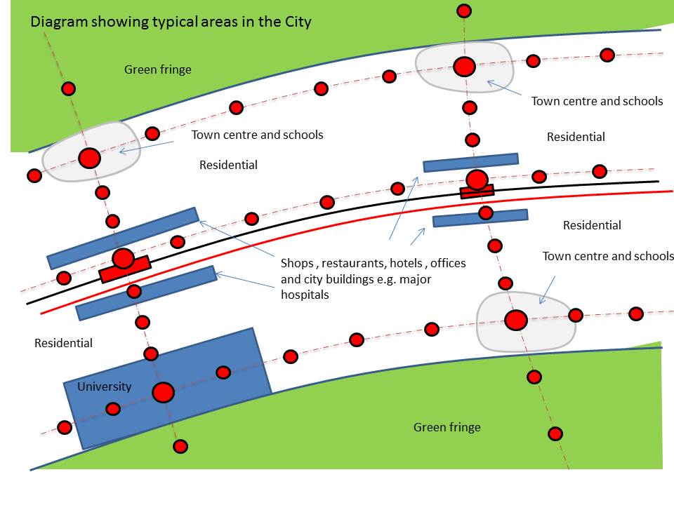 Some time ago I produced some pictures of a linear city. It looked rather like a huge greenhouse and attracted some criticism. These pictures show a modified city with separate buildings, town centres and rather more variety. I hope they are self-explanatory.